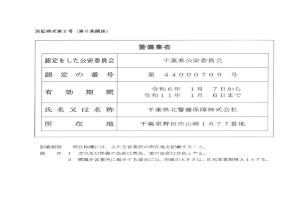 今後とも千葉県北警備保障株式会社をよろしくお願いいたします。